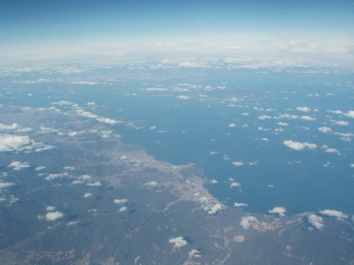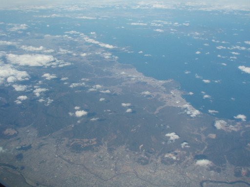 ↑SNA012便の車窓から/熊本→東京羽田。徳島県〜香川県あたりの海岸線。