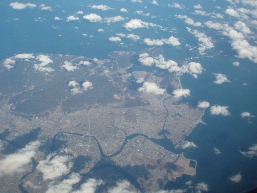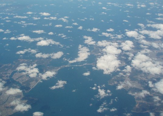 ↑SNA012便の車窓から/熊本→東京羽田。鳴門海峡付近。