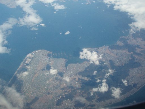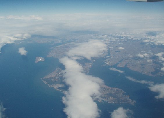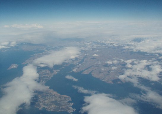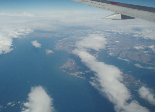 ↑SNA012便の車窓から/熊本→東京羽田。中部国際空港・知多半島。