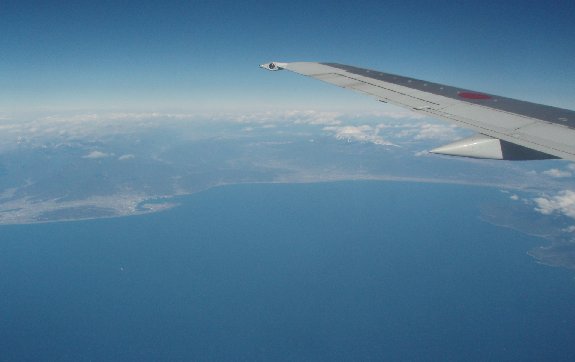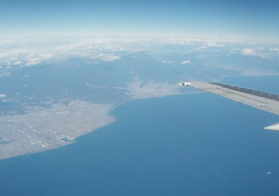↑SNA012便の車窓から/熊本→東京羽田。静岡と駿河湾。
