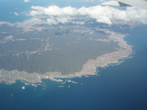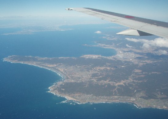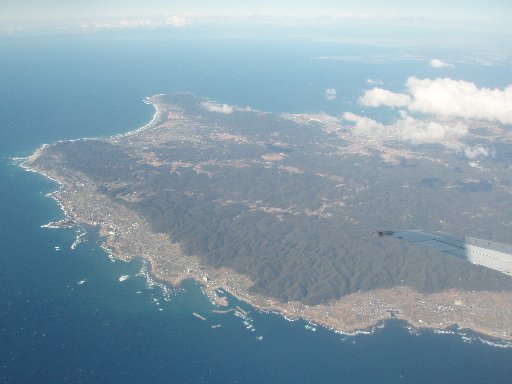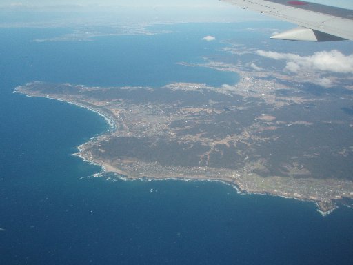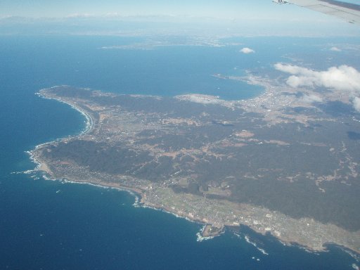 ↑SNA012便の車窓から/熊本→東京羽田。房総半島南端〜三浦半島。