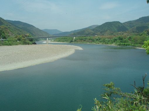 ↑四万十川周遊バスの車窓から/中村→江川崎。
