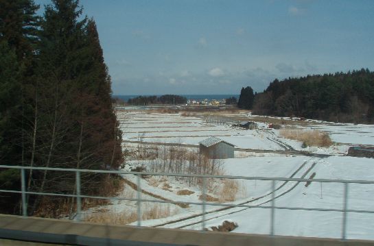 ↑特急「スーパー白鳥」号の車窓から/知内→木古内。青函トンネルを抜けて北海道最初の風景。
