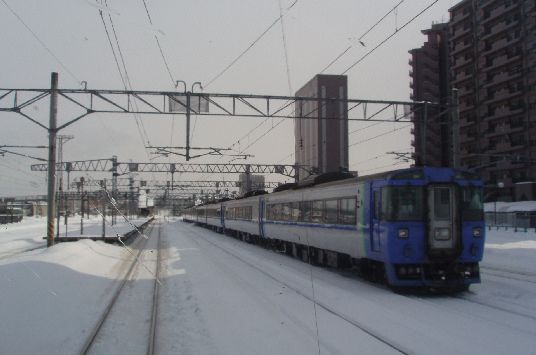 ↑特急「トマムサホロスキーエクスプレス」号の車窓から/札幌→新札幌。