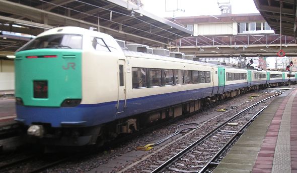 2003年6月、直江津 19:22発 北越 7号 新潟行からの日本海の夕暮れ時の車窓です。