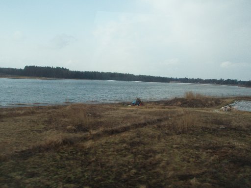 ↑特急「かもしか」号の車窓から/八郎潟→東能代。