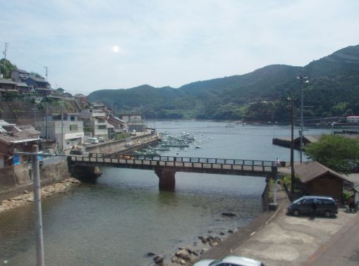 ↑特急「(ワイドビュー)南紀」号の車窓から/熊野市→新宮。熊野川の鉄橋を渡ると、まもなく新宮駅到着です。
