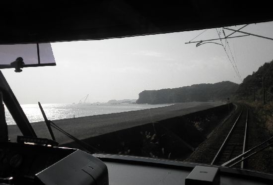 ↑特急「(ワイドビュー)南紀」号の車窓から/新宮→紀伊勝浦。