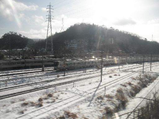 ↑特急「(ワイドビュー)しなの」号の車窓から/米原→岐阜。米原駅を出ました。
