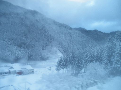 ↑特急「スーパーいなば」号の車窓から/智頭→佐用。智頭駅を出ました。