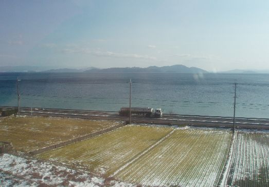 ↑特急「サンダーバード」号の車窓から/敦賀→近江塩津。