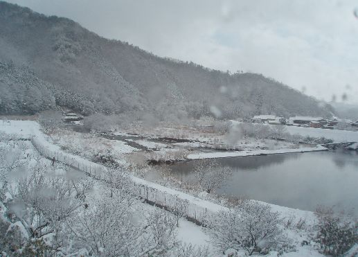 ↑特急「タンゴディスカバリー」号の車窓から/保津峡駅を通過