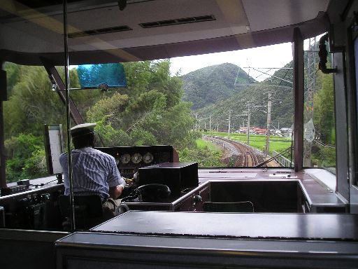↑特急「やくも」号の車窓から/倉敷→新見。まもなく 新見駅に停車します。