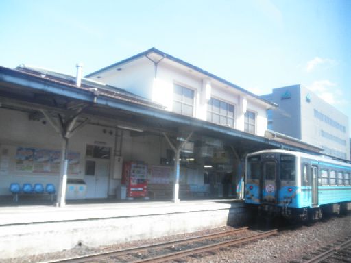 ↑特急「宇和海」号の車窓から/伊予大洲→八幡浜。八幡浜駅に停車。。