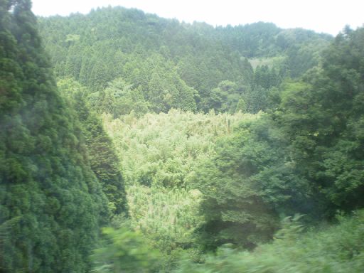 ↑特急「きりしま」号の車窓から/都城→霧島神宮。このあたりは深い山林の中を走ります。