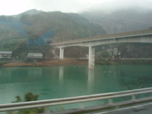 ↑特急「くまがわ」号の車窓から/八代→段。肥薩おれんじ鉄道の鉄橋をくぐる。