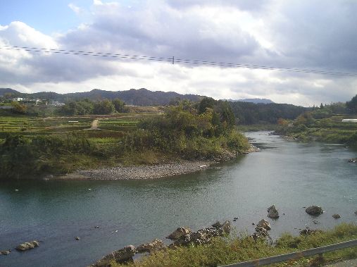 ↑九州横断特急からの車窓/豊肥本線 阿蘇のカルデラ内に広がる盆地を一望
