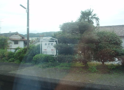 ↑特急「九州横断特急」号の車窓から/大分→緒方。緒方駅に停車。