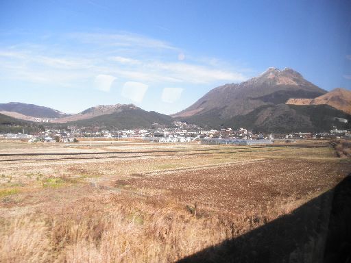 ↑特急「ゆふいんの森」号の車窓から/由布院→大分。
