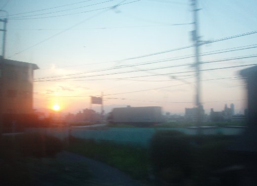 ↑寝台特急 富士 号の車窓から/広島→岩国。宮島口付近付近。