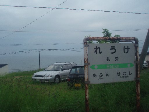 ↑留萌本線・普通列車の車窓から/増毛→礼受。真布(まっぷ)駅に停車。
