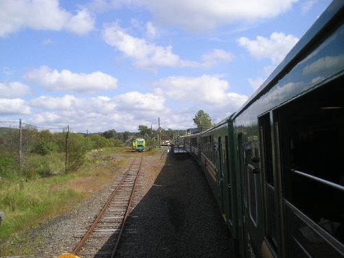 ↑「くしろ湿原ノロッコ」号の車窓から/まもなく塘路駅に停車。ここからは、臨時延長区間に入ります。