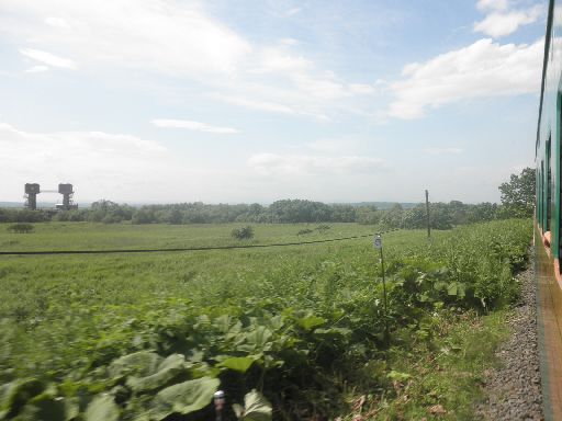 ↑「くしろ湿原ノロッコ」号の車窓から/釧路→釧路湿原。