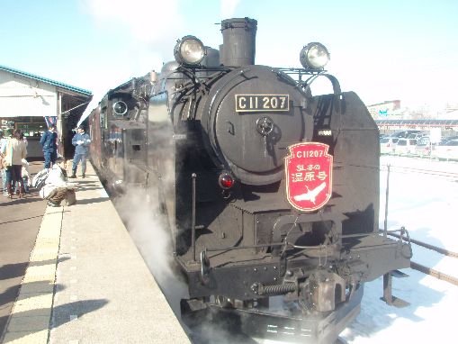 ↑釧路駅で出発を待つ「SL冬の湿原」号。