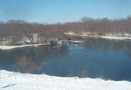 ↑「SL冬の湿原」号の車窓から/釧路湿原→塘路。塘路駅に停車。