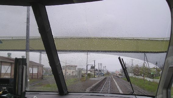 ↑「優駿浪漫」号の車窓から/勇払→鵡川。鵡川駅に停車。