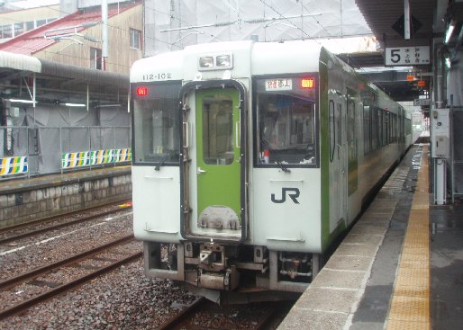 ↑「あぶくま」号の車窓から/いわき→小野新町。小野新町駅に停車。