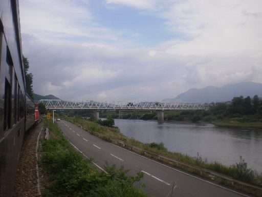 ↑「飯山線全通80周年」号の車窓から/豊野→飯山。