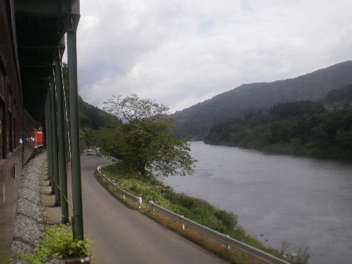 ↑「飯山線全通80周年」号の車窓から/飯山→森宮野原。桑名川駅を通過。