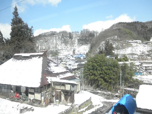 ↑信越本線「妙高」号の車窓から/長野→豊野。