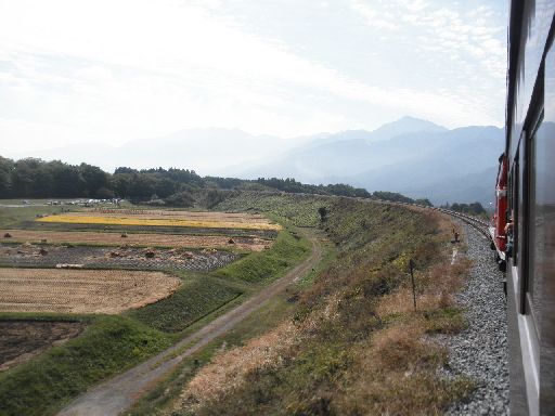 ↑「レトロ小海線」号の車窓から/甲斐小泉→小淵沢。