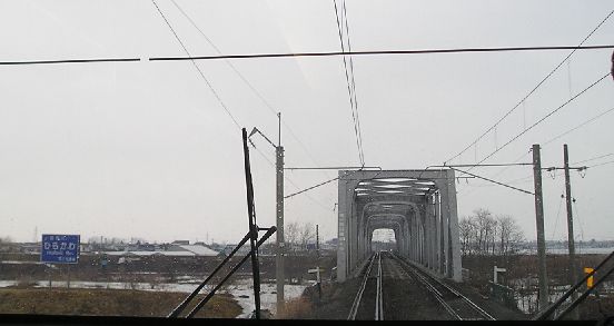 ↑リゾートしらかみ号の車窓から/奥羽本線 弘前→川部 鉄橋を渡った直後 やや高台から平野を一望できます。