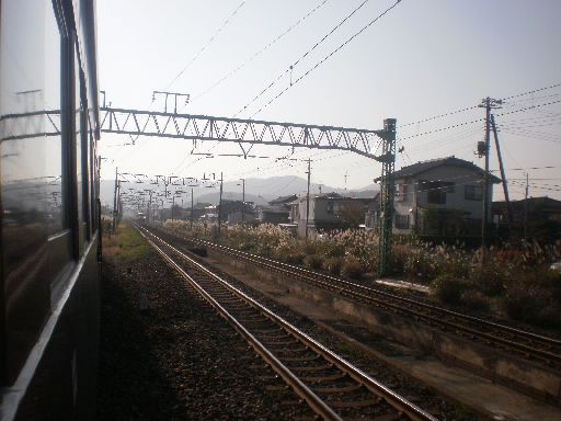 ↑「セピア色の信越線」号の車窓から/直江津→妙高高原。二本木駅のスイッチバック。 この列車は通過。