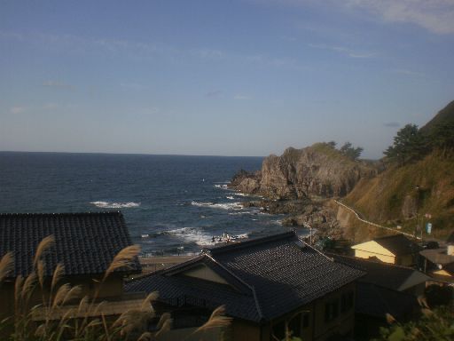 ↑「SLうまさぎっしり庄内」号の車窓から/あつみ温泉→鶴岡。三瀬駅を通過。三瀬駅の手前から、日本海から分かれます。