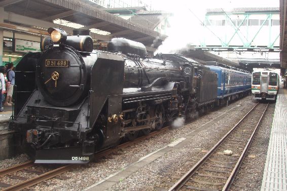 ↑高崎駅で出発を待つ「SL碓氷」号。