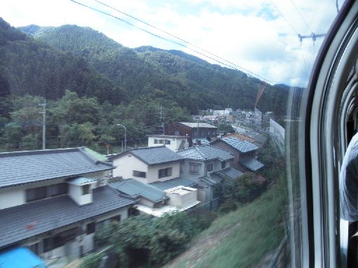 ↑快速「ビューやまなし」号の車窓から/大月→甲府。大月駅を出ました。