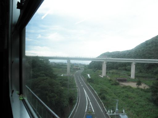 ↑山陰本線・普通列車の車窓から/浜坂→東浜。浜坂駅を出ました。