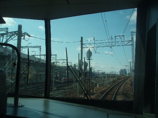 ↑快速 マリンライナー 号の車窓から/岡山→茶屋町。岡山駅を出発しました。