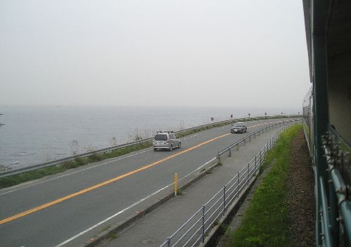 ↑「麗らかトロッコ」号の車窓から/伊予長浜→串。