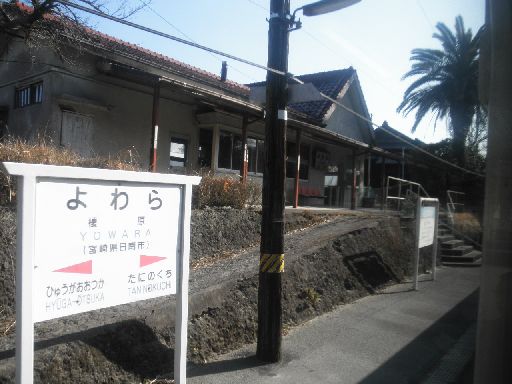 ↑日南線・普通列車の車窓から/日向大束→南郷。榎原駅に停車。
