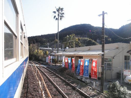 ↑日南線・普通列車の車窓から/日向大束→南郷。南郷駅に停車。