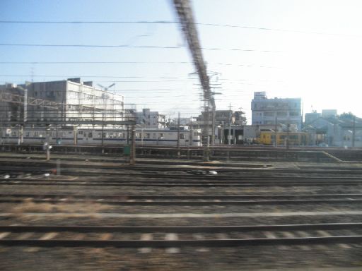 ↑快速「なのはなDX」号の車窓から/鹿児島中央→喜入。鹿児島中央駅を出ました。