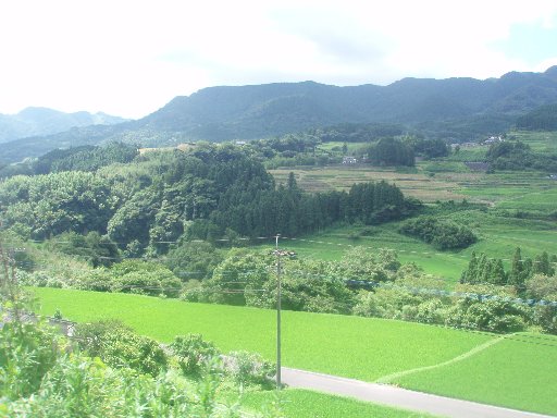 ↑トロッコ列車(トロQ)の車窓から/庄内→湯平。
