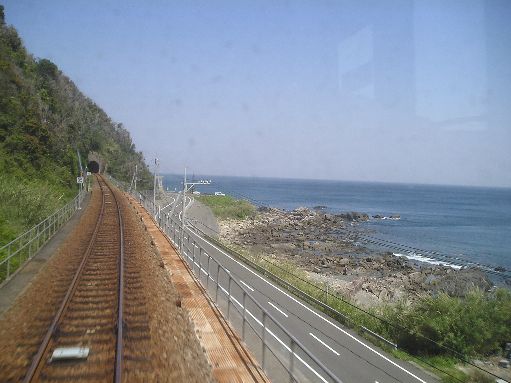 ↑土佐くろしお鉄道の車窓から/土佐入野→土佐白浜。