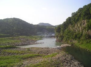 ▼大分県に入ってからの川沿いの車窓 阿蘇山ほどのスケールはありませんが、大分市街に入る直前まで自然の変化に富んだ車窓が楽しめます。