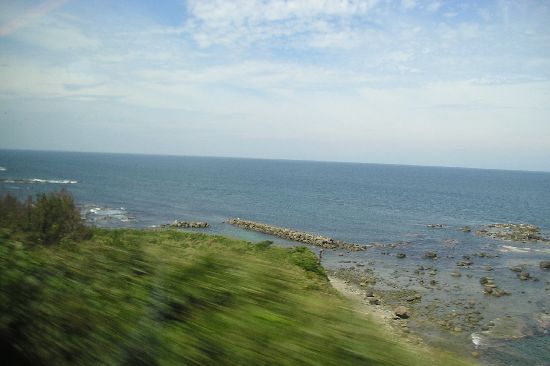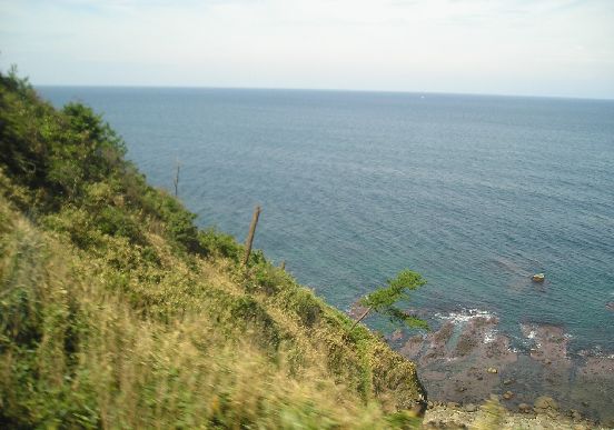 ▼出雲市を出発して、数分後には日本海へ 益田まで延々と海岸車窓が続きます。